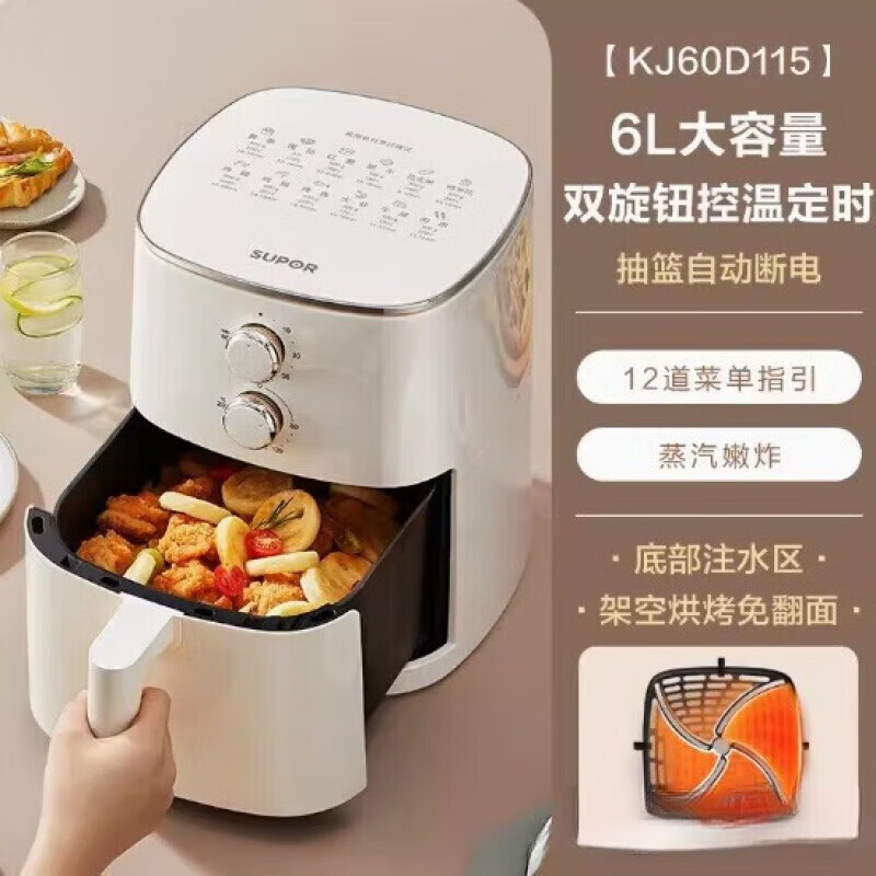 苏泊尔(SUPOR)空气炸锅6L大容量家用多功能无油烟电炸锅煎炸锅薯条机无油低脂油炸 双旋钮控温